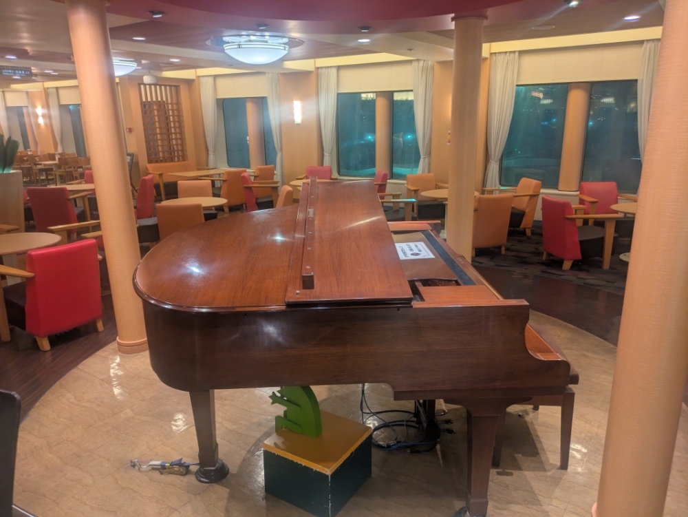 翌日は残念ながら曇り空でしたが、船内で用事を済ませたり、再びお風呂に入ったりしてのんびり過ごすことができました。